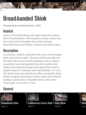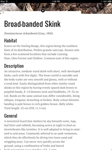 Everything you wanted to know about the family Scincidae in the Perth area is now available in one convenient app. Whether its a curious mind, or the desire for a quick identification, this app is a must for any lizard lover visiting or living near Perth.