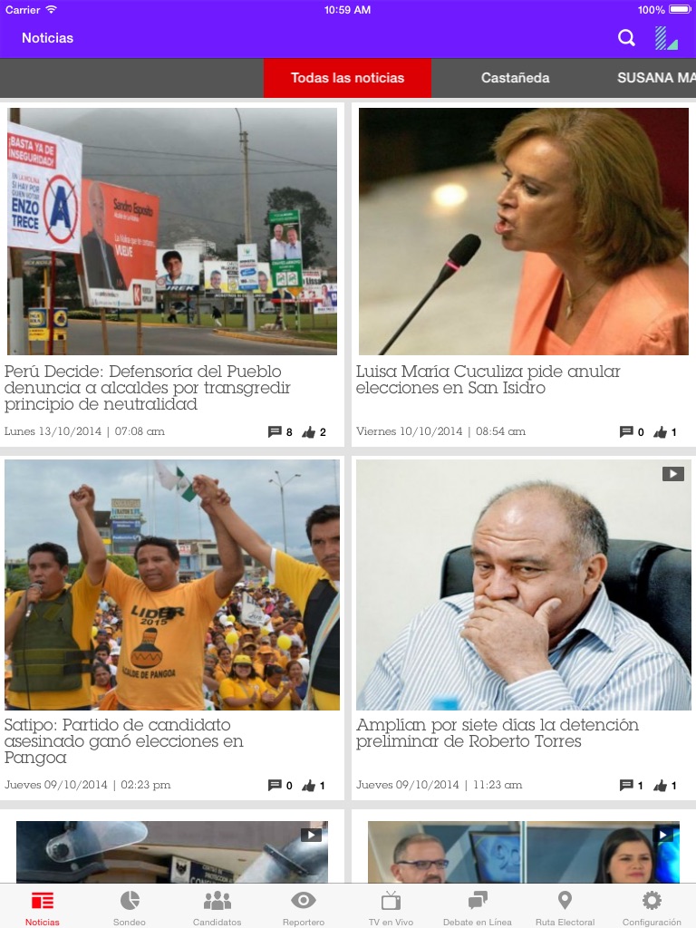 Aplicación de Latina que busca empoderar a los peruanos durante los procesos electorales. Cuenta con información actualizada de política, la opinión de los periodistas más influyentes, las últimas encuestas, la información de los candidatos y la voz de toda la ciudadanía.