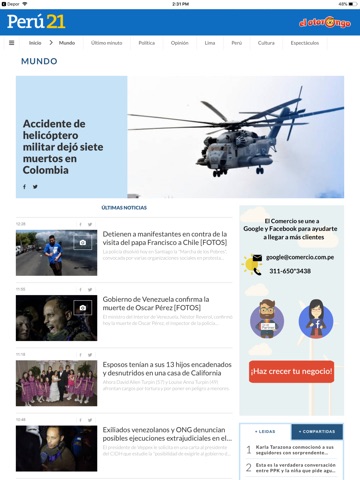 Las últimas noticias del Perú y el mundo en la versión móvil de Peru21.pe. Incluye secciones de actualidad, deportes, economía, mundo, espectáculos, finanzas y mucho más en Peru 21.