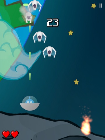 Humans from the nearby Earth have sent waves of ships to conquer your tiny little planet and steal all of its resources. As a helpless little alien, all you can do is hop into your UFO and try to fend them off for as long as possible. Shoot down asteroids, rockets, ships, and even astronauts...just make sure they dont destroy your precious home!