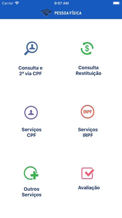 Aplicativo da Receita Federal do Brasil destinado às Pessoas Físicas. Nessa versão do APP Pessoa Física estão disponíveis os seguintes serviços: