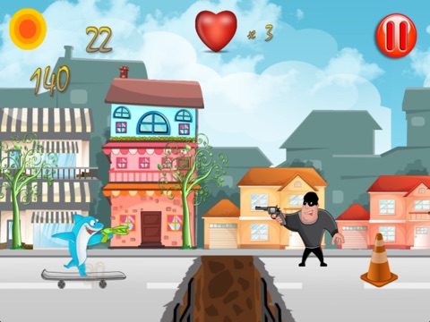 Help these brave animals rescue the city by catching the bad guys with their net guns. Stop the robbers from escaping and collect points along the way to unlock other skateboard heroes and save the town. Choose your favorite character: turtle, penguin, cat, dog, monkey or shark!