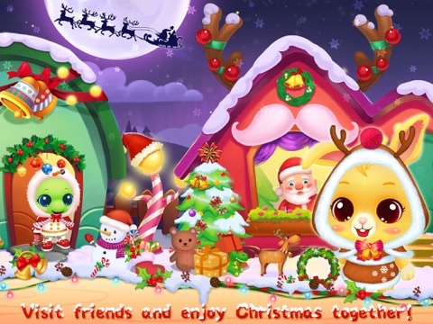 Open the game and tap your favorite animal to start. Wow~ the beautiful snow turns the street into a wonderland. And you cant take your eyes off now, huh? But sweetheart, dont linger here too long to keep your pet waiting. Lets get started by clicking the little things house and dressing it up. Done? Nice job! Next, slide the street, then tap any door to visit friends and play games. Whoopee~ it’s super fun to spend time with friends. Oh, but the festival really keeps our Santa and Elf busy. Dear, how about making some time to help them? Lets go!