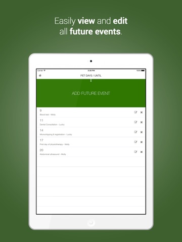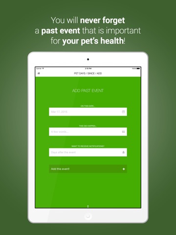 Pet Days Calendar is the app to remember your pet’s important events.