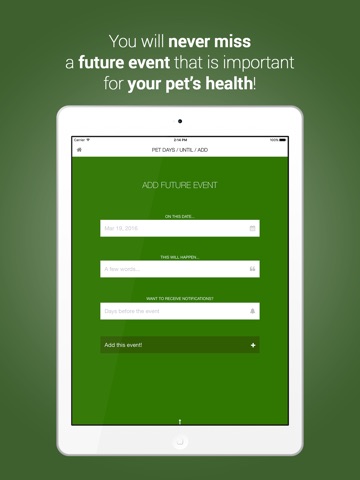 You will never miss a future event that is important for your pet’s health!