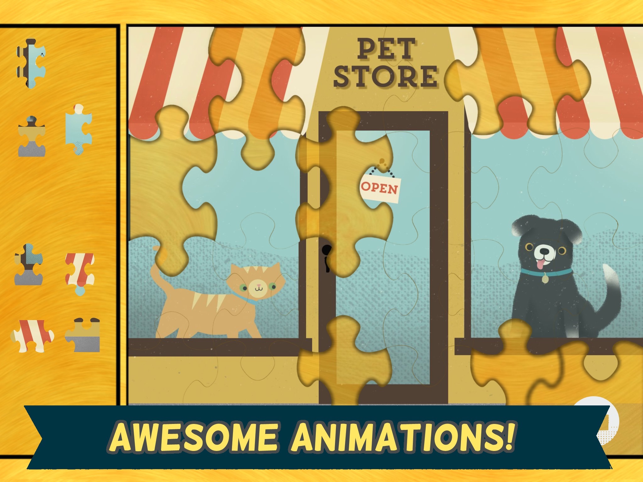 This high quality pet store puzzle app features virtual jigsaw pieces for learning shape recognition and matching- great for educational purposes or just for fun! Good for one of your childs first puzzle games.