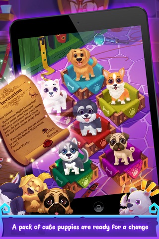 Rumour says that some sprites hold a crazy party every Halloween Night. Sleeping puppies awaken to see thousands of invitations fly over the sky, and drop through the chimney. They open their sleepy eyes only to find a letter floating in the air surprisedly. Oh, it’s from the elves of Halloween, indicating that an unmissable party is about to start. It’s your turn to dress up the little dog for the annual scary show, now give your puppy a shower and put some stickers on its face or body. Then choose the strange hats, denture and other accessories for your doggie. Ta-da! All the puppies in bizarre dresses run through the dark happily, let’s follow them to have some thrilling fun!