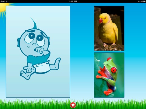 • Which Animal?: For older children, two animals are shown and a sound is made. If your child taps the animal that made the sound, they go to the next round.