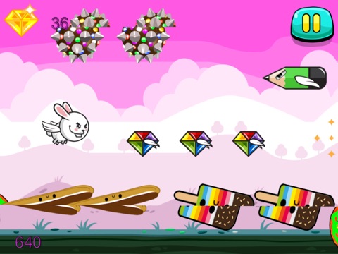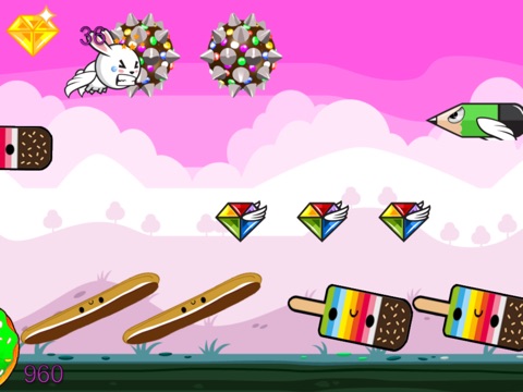 Youre a Super Bunny Rabbit- angry at the bad guys out there who have got a problem with you. They want to stop you collecting your Precious Gemstones! But you won’t take it – you get out there and dodge and weave your way past them to see how many of the precious gems you can scoop up! If a bad guy bugs you, blast him away – How? Just tap left to fly and tap right to shoot!