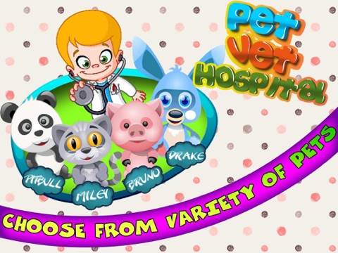 Pet Vet Hospital comes loaded with several pet animals that are injured, sick and diseased with ear, nose and throat problem, you are the only vet doctor in town. Rescue pets in this app, you are the only help for our vet doctor help treat them in his clinic and make them happy & healthy.