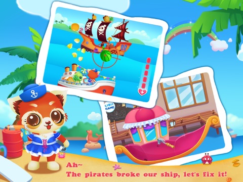 Wow, so many adorable friends, you should choose one to be your partner. Then, what else do you need? A ship, of course. Why not make it beautiful with the decorations before setting out? Yoo-hoo~ Lets go and face all on the sea bravely: take your friends home; help friends deliver goods; go catch some sea creatures as the fisherman wishes, and so on. All these will bring you a sense of achievement, right? Wait, why does it become so dark suddenly? Oh, my, theres a big storm approaching, we have to do something. Dont worry, just keep balance and the ship will be okay! Aha~ We made it. Did you hear that? Some people are crying for help, have they fallen into the water? Hurry up, lets save them. Besides, youd better be on the alert, as the pirates would occasionally come and attack you with fruit bombs. You can crush their bombs, and let them see what you got. Ah~ Look at the ship, its so scarred. Come on, it needs your help. Youd better repair it right now, as it is a must for you to explore the mysteries of the sea.