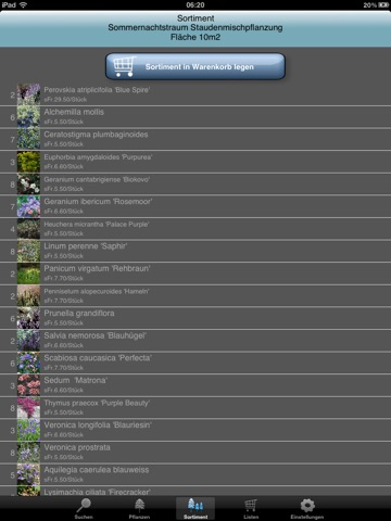 Einfach Quadratmeter bepflanzbarer Fläche eingeben, Ihr iPhone/Pad/iPod berechnet ein professionelles Sortiment für Ihr Anliegen