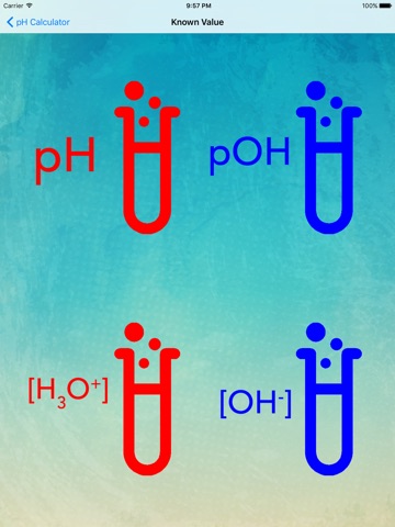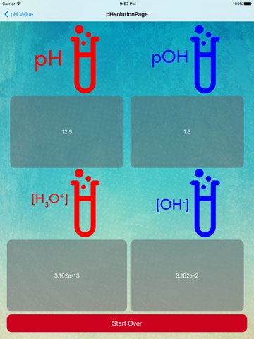 This simple app lets you quickly calculate pH, pOH, [H+], and [OH-] if one of them is given. This app is made for students that need a helping hand in solving these problems that take a while.