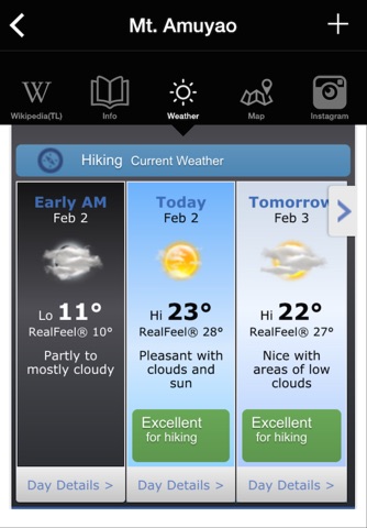 • Includes weather information (with remarks whether an excellent/good/fair/poor day for hiking)