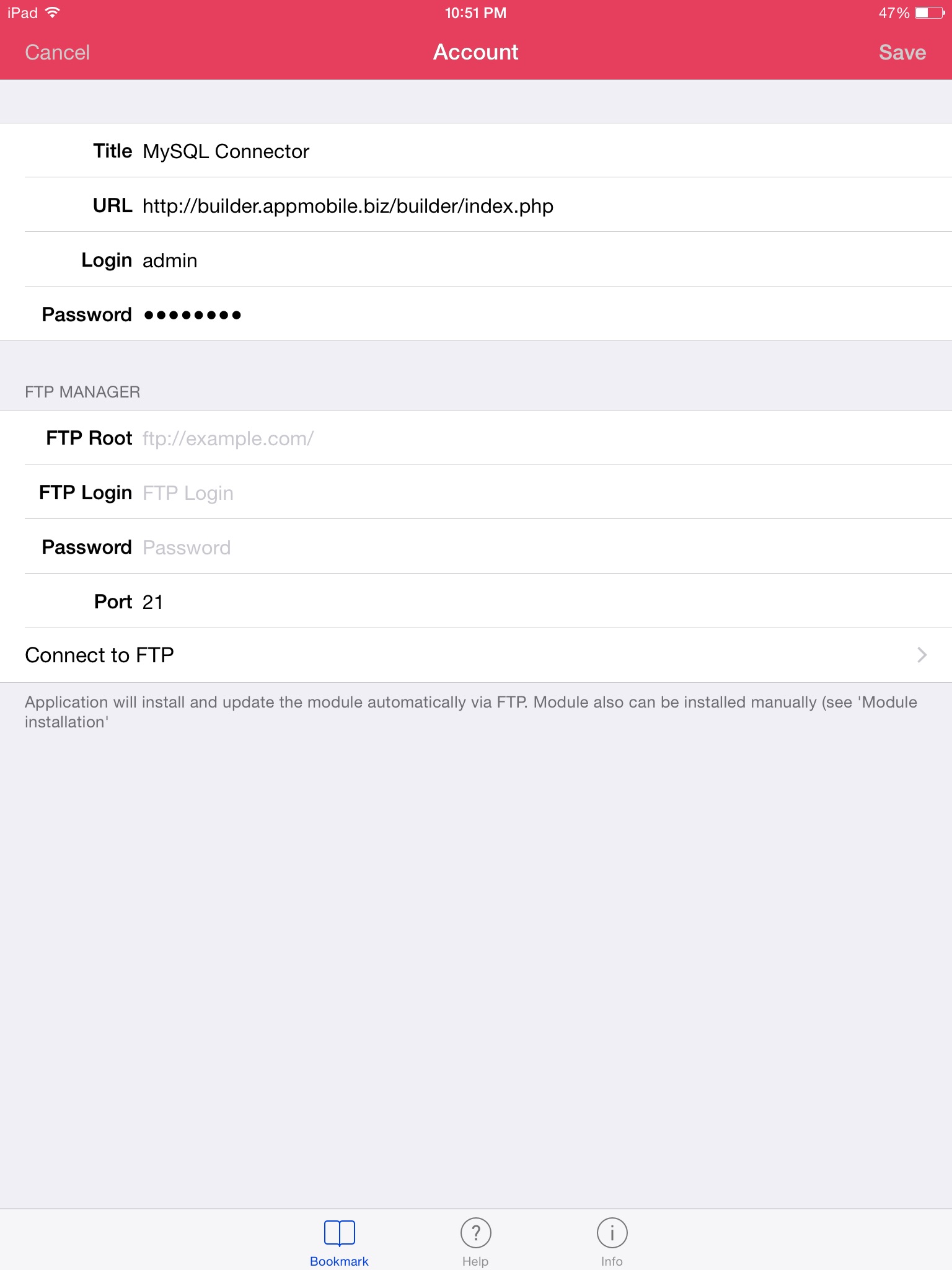 - Download Phantom to your phone and with the built-in FTP client set the module on your server