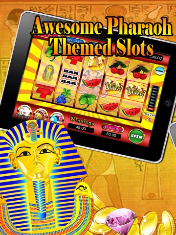 Your search for an awesome Pharaoh Slot Machine is complete! Download today to enjoy an amazingly fun slot machine with ancient Egyptian styling across 5 crazy slot spin reels.