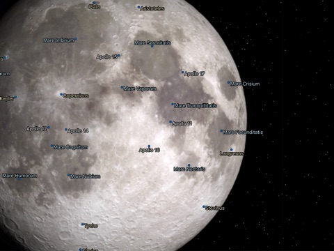 * Turn on a full lunar atlas, with dozens of labeled locations, including landing sites, craters and lunar maria.