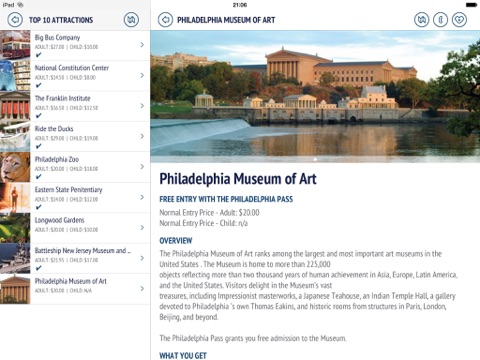 • Info on 40+ attractions in Philadelphia, including opening times, maps and prices