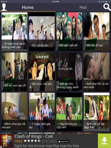- Danh sách phim được sắp xếp theo từng thể loại, bố trí rõ ràng và dễ sử dụng.