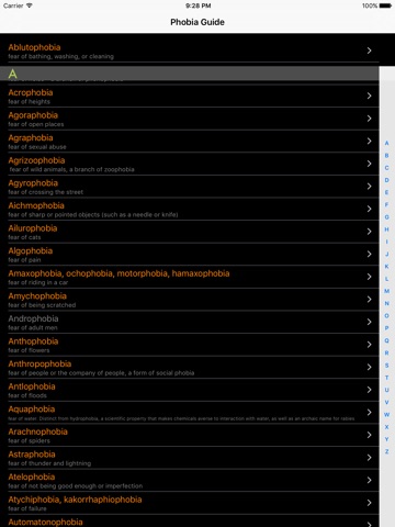 Have you ever wondered what kind of phobias exist? Then this app is for you. You will get all names of the phobias with their appropriate descriptions.