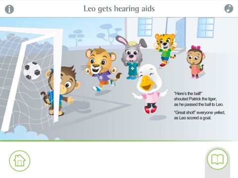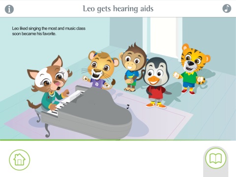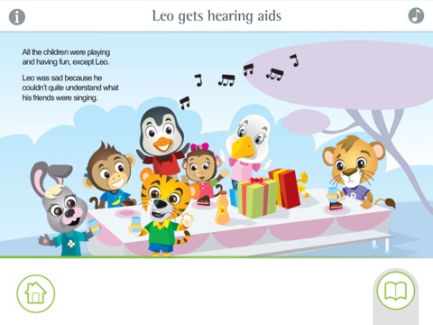 Simply swipe though the pages of Leo gets hearing aids and Leo gets a Roger system as you read along with the stories. Tap on the characters to make them come to life and use the bookmark bar for quick access to your favorite pages.