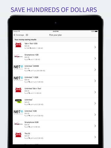 Give it a try today and see how you can save on your phone bill every month! Simply enter the voice minutes, texts, and data you require, as well as your desired coverage area. Review plan prices, features and coverage areas and decide which plan is best for you!