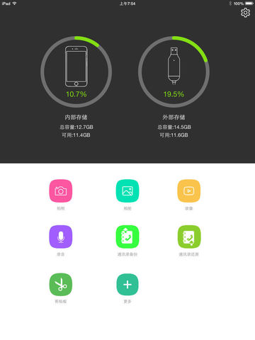 由相册导入图片和拍摄的短片,或通过itunes导入文件,保存至手机本地进行集中安全管理,支持单个或多个文件的复制、删除、移动等常用操作;连接iPhone、平板电脑等移动设备(需软硬件支持OTG功能),这样即可实现PC、MAC、PDA、iPhone等设备间的数据共享。