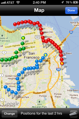 Identique à latitude avec en supplément lhistorique des déplacements.