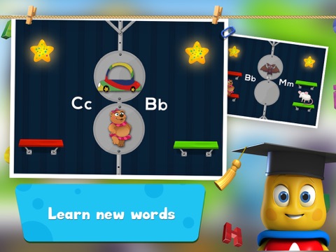 This educational application teaches your child the skills of matching, sorting, and categorising objects based on the letter they begin with.