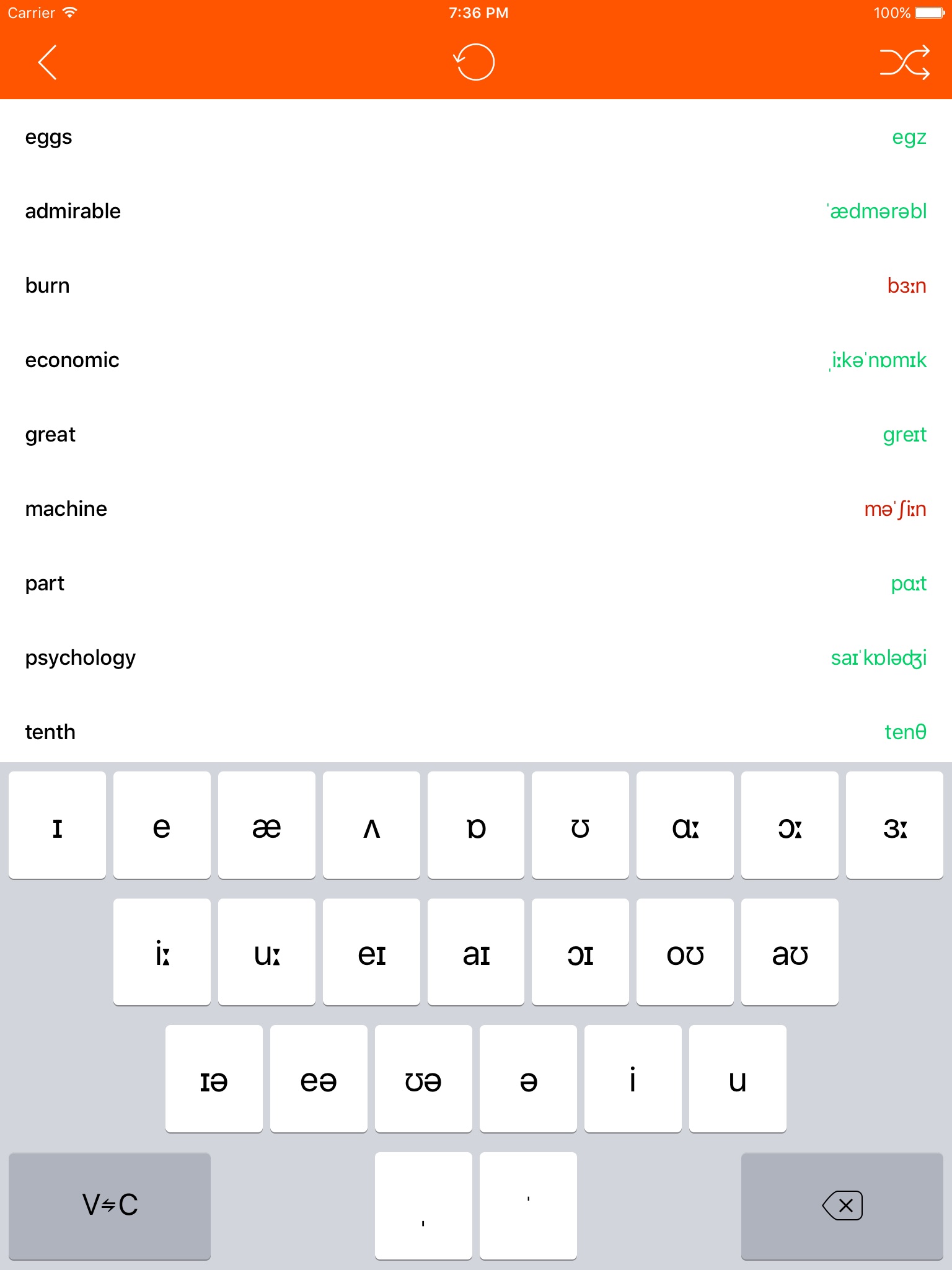 Use the built-in special keyboard to transcribe the words, get quick feedback on your performance and browse the included dictionary to learn the possible solutions.