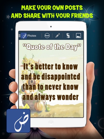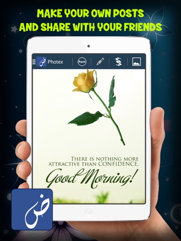 Photex / Photo Editor is a simple app to add text on photos with attractive designs and multiple features. If you lack creativity and not an expert in the art of design then try photex. It will really help you for making posts and in advertising for business, media groups, poetry/shairy/shayari writers and Islamic post designers. Now writing on photos and images of your favorite stylish fonts is quite simple. Not only it has much more fonts and stickers but also a variety of backgrounds are available. Make posts like Poetry, Religious Verses ( Quran / Kuran & Ahadith ), Love Letters, Selfies, Snaps and other Social and Public service messages with just a simple swipe.