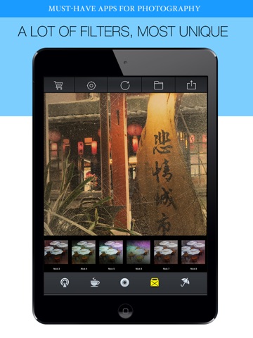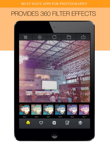 A lot of filters, most unique, Photo 360+ provides 360 filter effects beloved by professional photographers, There are also textures and its organized in a very neat fashion, its a stylistic choice and offers a choice of 360 different types.