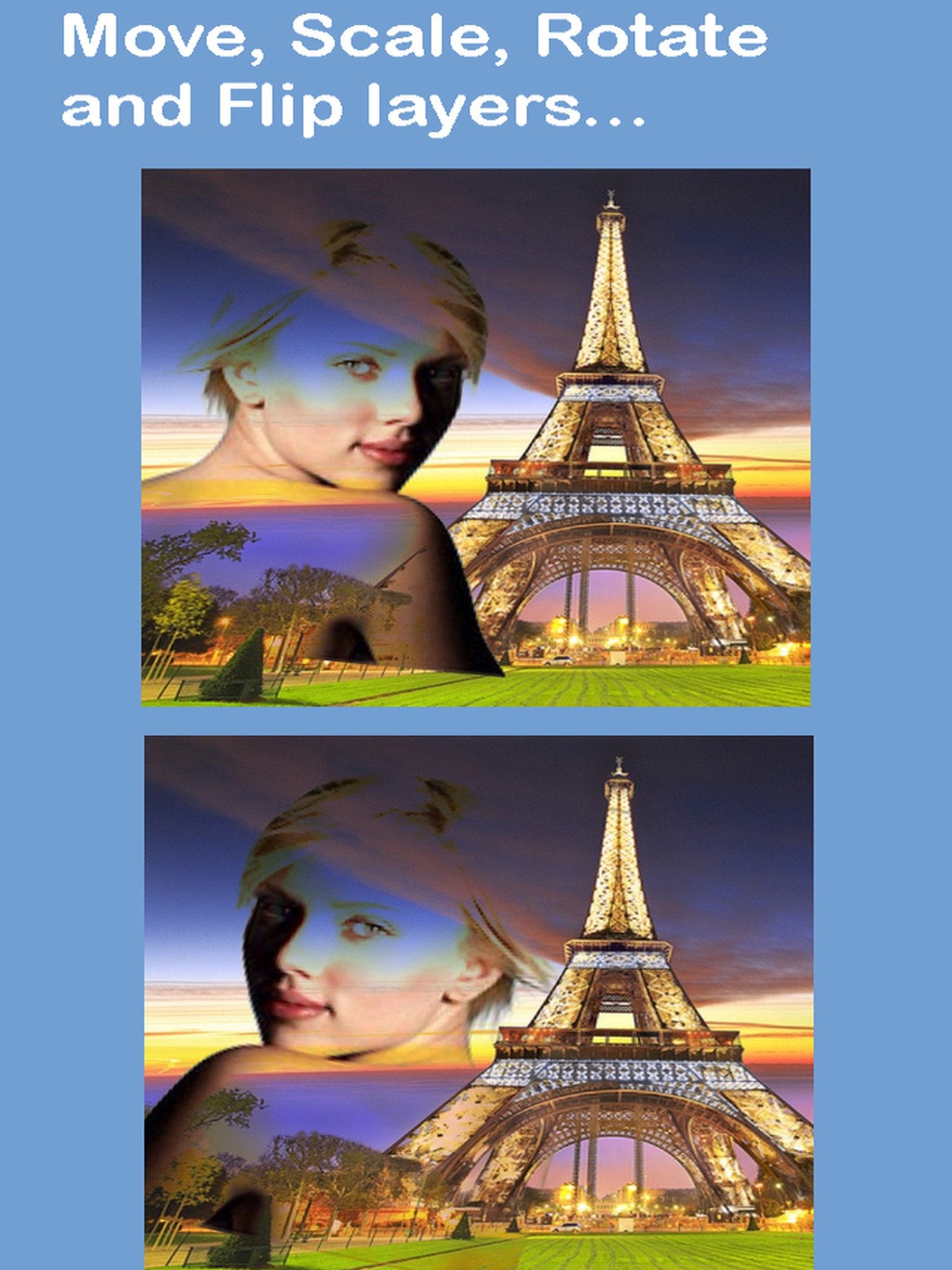 A very simple to use app with many exciting features for combining two images with various blend modes. The response time is amazingly fast to create your blend effect!
