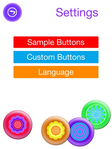 Touch anywhere on the screen to create a button. Interact with the buttons by tapping them to reveal images and sounds. Tap the buttons again to “pop” them. Shake the device to hear a rattle sound and watch all of the buttons disappear at once.