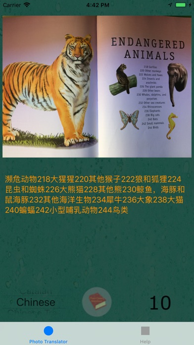 Photo Camera Translator is a fun app that turns your camera into a powerful translator and voice reader. It can translate texts detected on live snapshots, save the text history and read the texts aloud.