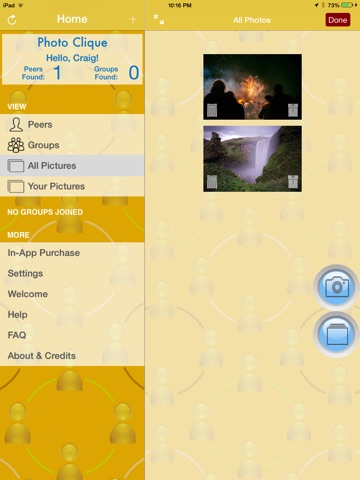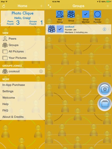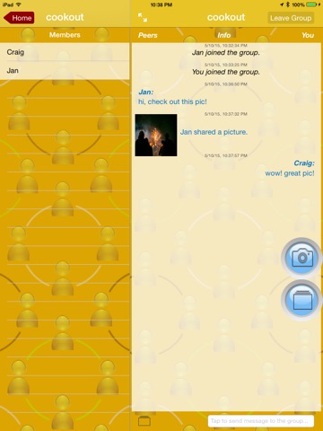 Share photos with your clique! Create a group and have your friends join. Then, when one you takes or shares a photo, all of you get it within in seconds. You can also share messages. And internet isn’t even required! Your devices communicate directly with each other, so you can use it anywhere fast and easy. Once you collect the photos you want, you can save them to your iPhoto Library or share them using tradition social media.