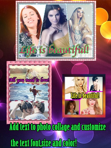 Collage your mutiple photos with captions and post them to Email and many social network.