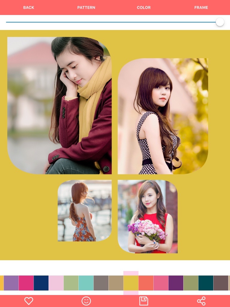 Play with your photos, patterns and stickers. Decorate your photos with awesome pattern background and so cute stickers. Save and share your memories with your friends, your family such as Zalo, Facebook, Gmail,...
