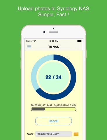 * Easily transfer your photos (videos) wirelessly to or from Synology NAS with full resolution.