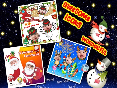 * Unique Christmas-style Photo masks (Santa Claus, Snowman) plus other fantastic masks (Star, Bubbles, Hearts & Flowers)