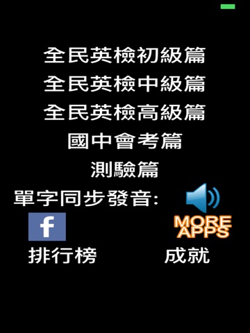 超過9000個全民英檢英文單字及中文翻譯,發音功能,測驗模式。適合全民英檢(GEPT)、多益(Toeic)、雅思(ielts)、托福(toefl)等測驗。