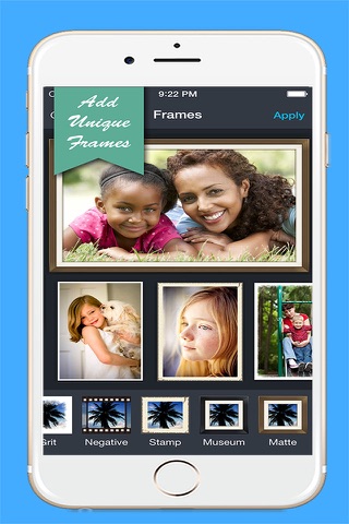 * Just tap on the lower-left Frame icon, and swipe to select a frame to make an instant collage!