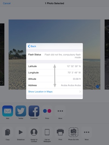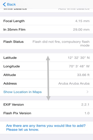 + Shows GPS metadata like latitude, longitude, address, link to Apple maps.