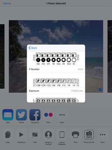 + Shows EXIF metadata like aperture, shutter speed, ISO, exposure and more.