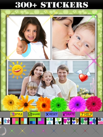 * Over 300 frames styles (bling,colourful, stripe, fabric, heart, star, flower, dot, paper, wall etc)