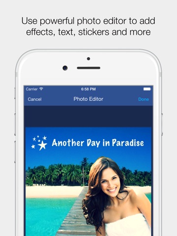 First try to use it and its a $2.99 fee to use my own background photo. Only 4 or 5 of their cheesy standard photos to use for free. Ill pass thanks.
