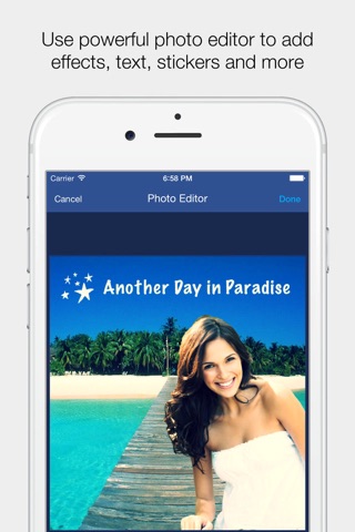 6. Use powerful photo editor to apply Photoshop-like effects - add filters, stickers, memes and more
