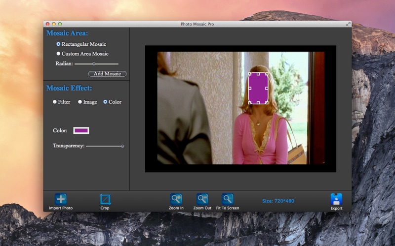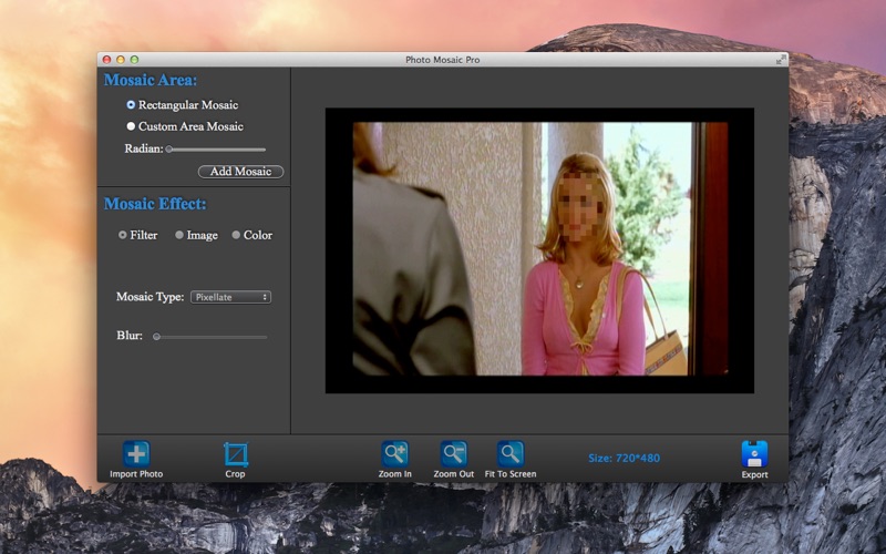 Photo Mosaic Pro Lite can add a mosaic effect to the face or other anything . You can blur part of your photo, let other people cant discern.