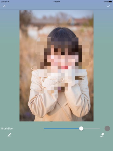 Simply pick a photo from the photo albums or take a photo,make a part of the picture mosaic with a touch of finger,then make those parts you dont want others to see hidden.And you can also use it to create interesting and funny effect from your normal photos.