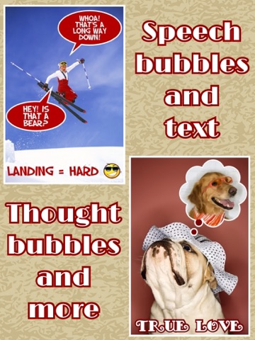 • Add thought bubbles, speech bubbles and text shapes to your photos.